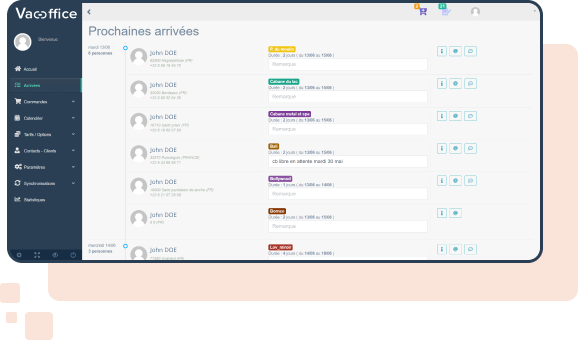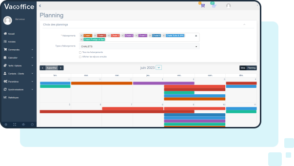 Grâce à ses fonctionnalités avancées, Vac-Office vous offre une vision claire de votre planning. Le suivi des réservations devient un jeu d'enfant.